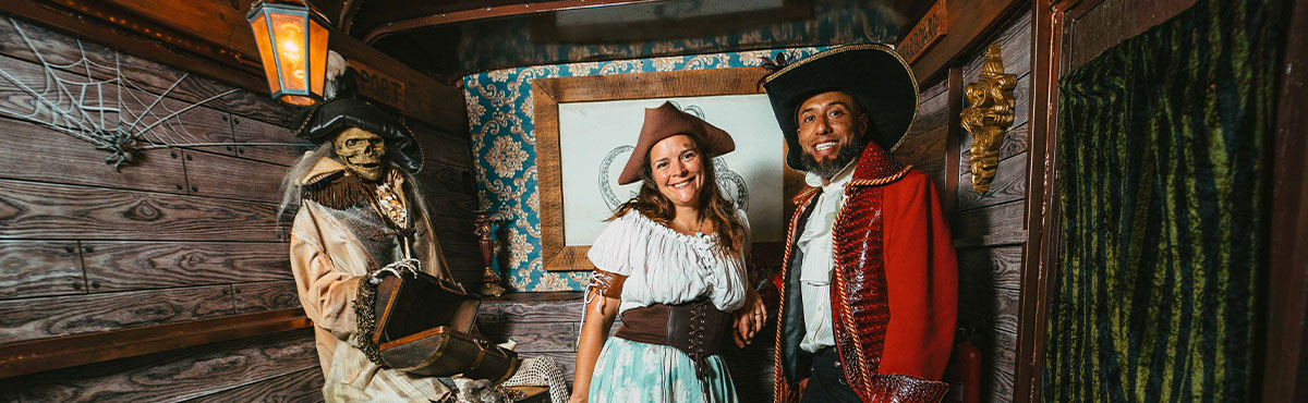 The premise behind their work revolves around play and engagement. Their business plan started with a haunted trail designed for family fun and enjoyment during the Halloween season. It quickly grew into a team and corporate team building experience, into game rentals, and the latest addition to the business: a mobile, 30-foot pirate ship escape room experience.