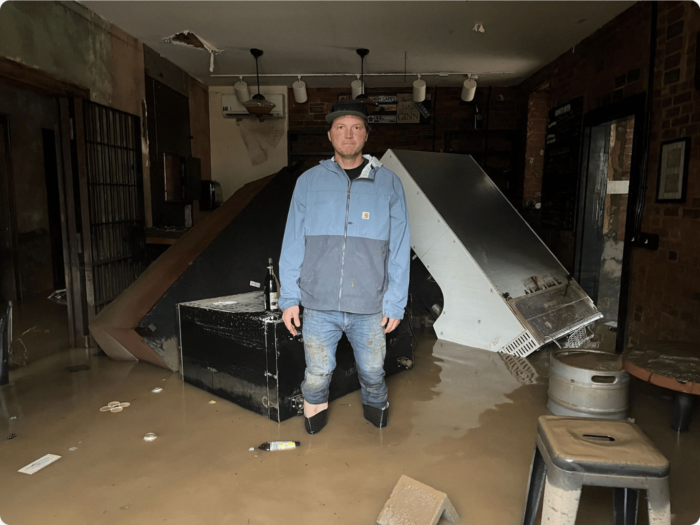 In the fall of 2024, Hurricane Helene delivered a devastating blow to Western North Carolina, submerging Marshall under record-breaking floodwaters and leaving businesses, homes, and landmarks in ruin. Josh Copus’ Old Marshall Jail Hotel and Zadie’s Market were among those hit, with more than 11 feet of water filling the historic building.