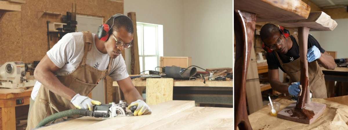 Unable to find furniture he wanted in big box stores, Kwadwo picked up some tools, watched a few videos, and built his own end tables for his new home. “Looking back, they were pretty crude,” he said, “but I fell in love with the process.” What began as a DIY project quickly became a passion.