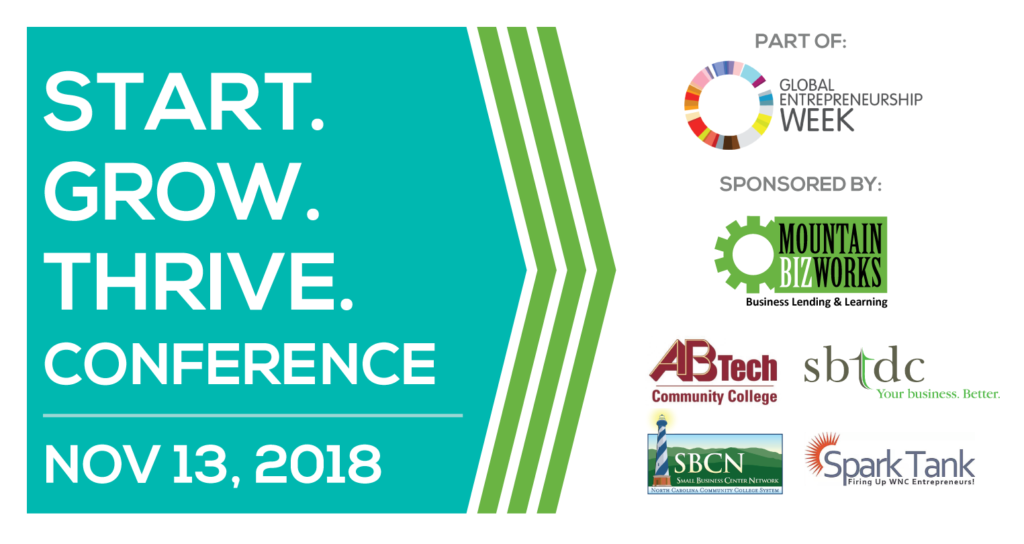 The conference is free (registration is required) thanks to generous support from our partners and sponsors including Mountain BizWorks, A-B Tech Small Business Center, NC Small Business Center Network, SBTDC, Carolina Small Business Development Fund, Self-Help Credit Union, Spark Tank, and Venture Asheville.