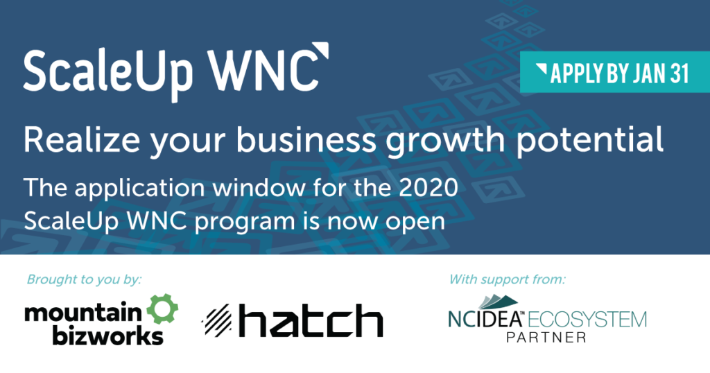 In preparation for the 2020 ScaleUp WNC application deadline (Jan 31!), Mountain BizWorks is hosting six Founder Networking events around the region. Local small business owners with strong growth potential are invited to come out, connect with other growth-oriented entrepreneurs, and learn about the 2020 ScaleUp program – PLUS, all attending founders will have the opportunity to exercise your scale-up mindset by giving a 30 second pitch on your company and a potential growth opportunity. The best pitch as voted on by the audience will win a basket of epic ScaleUp Alumni products (and the admiration of all).