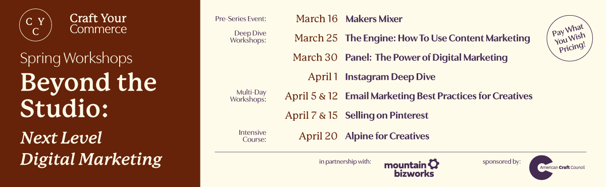 The Makers Mixer is part of the Craft Your Commerce Workshop Series Beyond the Studio: Next Level Digital Marketing